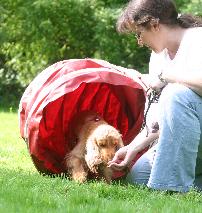 Nach 2 Übungsstunden schaffte Ida 5 Hindernisse ( Hürden, Tunnel und Tisch) hintereinander ohne Fehler. Inzwischen sind drei Übungsstunden vergangen und Ida kann jetzt auch das große "A" (Steilwand) bewältigen und den "Schwebebalken". Sie schafft einen Parcour mit 9 Hindernissen in der vorgesehenen Reihenfolge. Aber auch der Lacher des Tages war ihr gewiss: Nach Beendigung der Übung, als alle Hunde spielen durften, trottete Ida noch einmal zum Parcour und absolvierte ihn ganz für sich alleine. Wenn das nicht ein Beweis für Arbeitsfreude ist! :o))