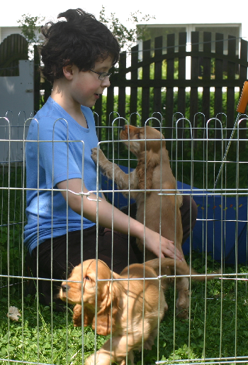 Das Junior-Herrchen nimmt seine Aufgabe ernst: Vorbereitung auf den Alltag - der Regenschirmtest