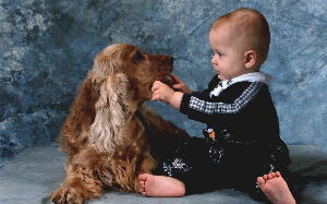 2000: Fabian (10 months) with "his" Micky ( 8 years), counting her teeth at the "International Dog Show, Dortmund"